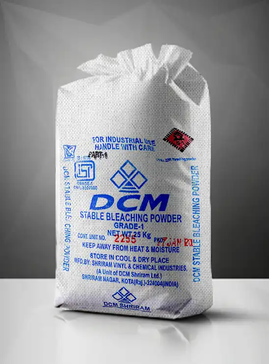 DCM Shriram Chemicals produces Stable Bleaching Powder (SBP) with a capacity of 40,000 TPA at our Kota facility. This essential chemical is manufactured by reacting lime with liquid chlorine, a co-product of our chlor-alkali process. SBP contains approximately 35% available chlorine.